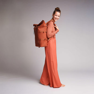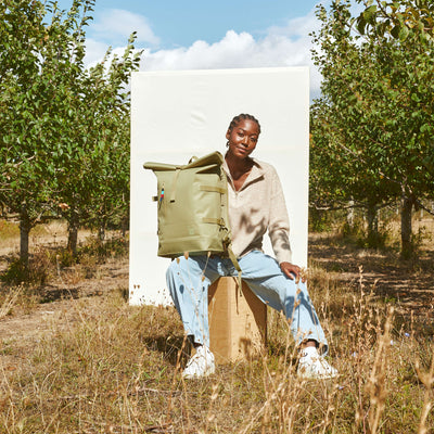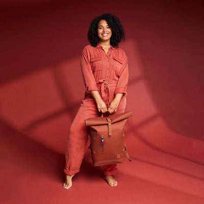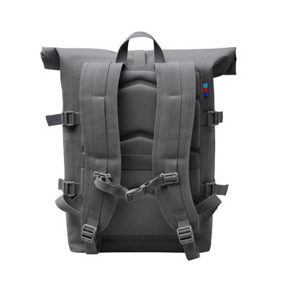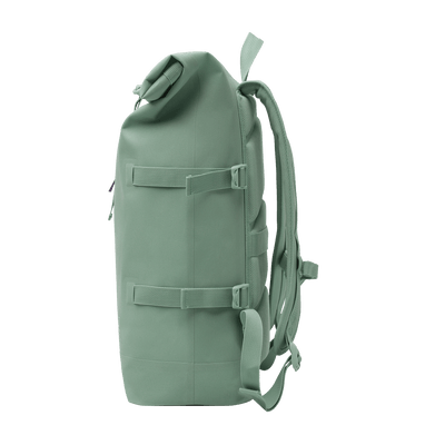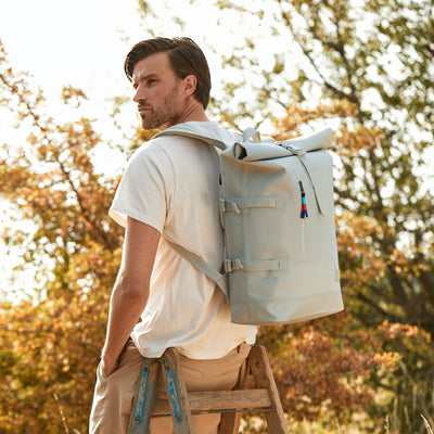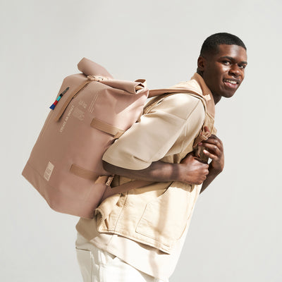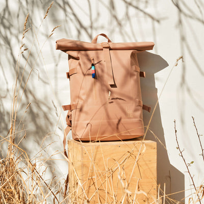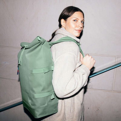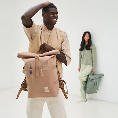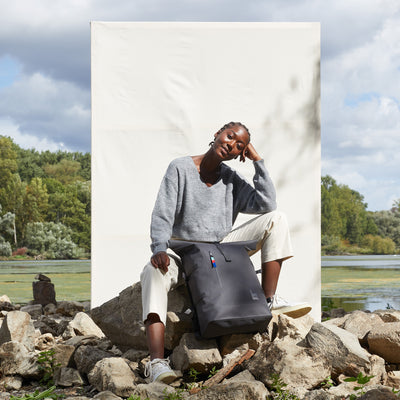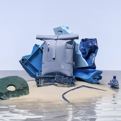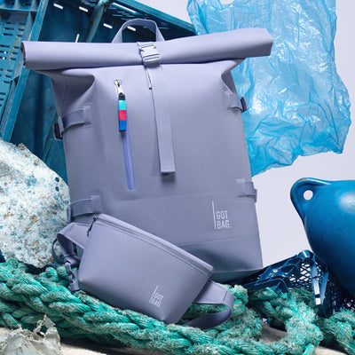 - Hauptmaterial aus recyceltem Ocean Impact Plastic, Innenfutter aus recyceltem PET, Schnallen aus POM, Webbänder aus recyceltem PET, Polsterschaum aus EVA und PE, Reißverschlüsse aus Nylon